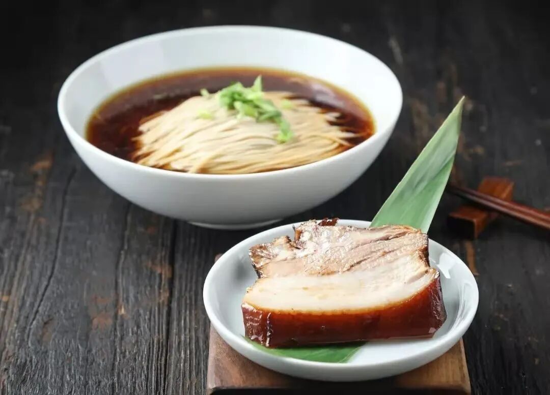 松鹤楼怎么想起做苏式汤面了呢?我从资料中获悉,松鹤楼是以面馆起家的。根据清光绪十八年(1892年)修葺苏州面业公所时立的碑刻记载可知,松鹤楼起初为面馆,以焖肉面、卤鸭面等苏式面点闻名。