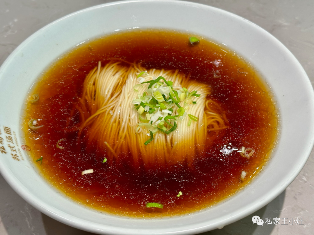 还会再去。苏式汤面确实别有一番风味,不同于北方面条的豪迈,多了一分温婉与精致。面细细的,汤头干净清澈,来上一碗也是很暖心暖胃。松鹤楼的汤面味道很不错,环境也很清丽干净,服务简约到位。不管是平时懒得做饭,还是肚子饿了简单充饥,都不失为一种不错的选择。整体四星🌟🌟🌟🌟红汤面,入口是浓郁的排骨汤的香气,面条劲道爽滑,口感非常好,汤头清澈干净,面香和汤香完美交融。还有白汤面,写了带酒糟,开车就没点这个,有机会尝尝。四星🌟🌟🌟🌟