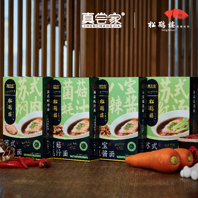 只需数分钟就能完成满满仪式感的一餐,既不用准备繁多的食材、也不需要很会做饭,一盒真尝家与松鹤楼联名的苏式汤面就能搞定。