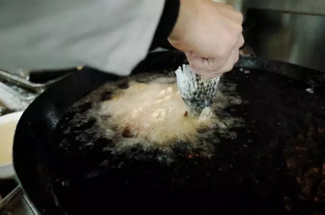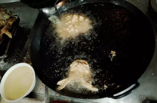 “像这个一定要注意油温要控制好,控制不好的话它容易鱼炸不透,炸不透的话它吃起来就没那么脆,不好吃,一般的话炸个5分钟是最好的。”——苏州松鹤楼厨师赵佳