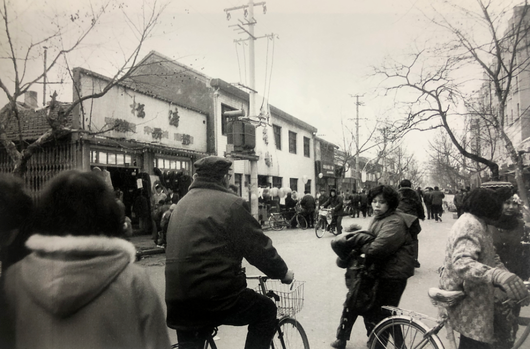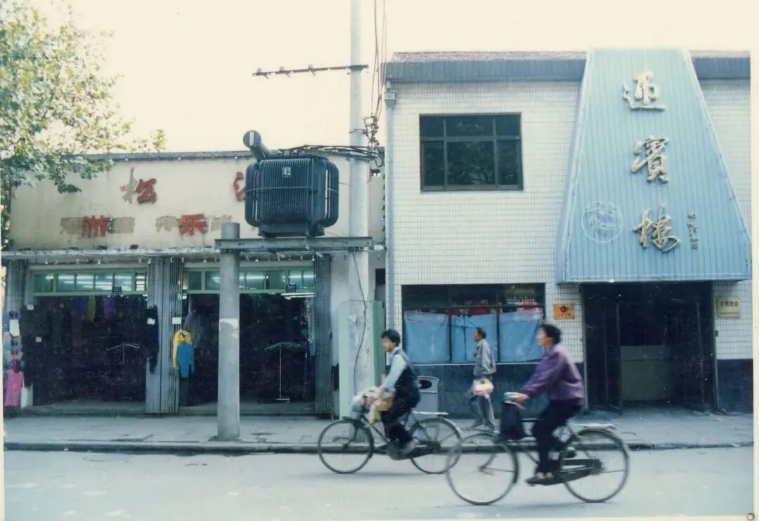 1993年的中山中路,左起第二家就是迎宾楼(唐西林 摄,松江档案馆 存)