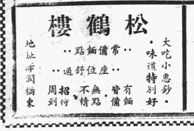 1946年8月7日,《茸报》第二版刊登的“松鹤楼”广告(邢砚斐 供图)