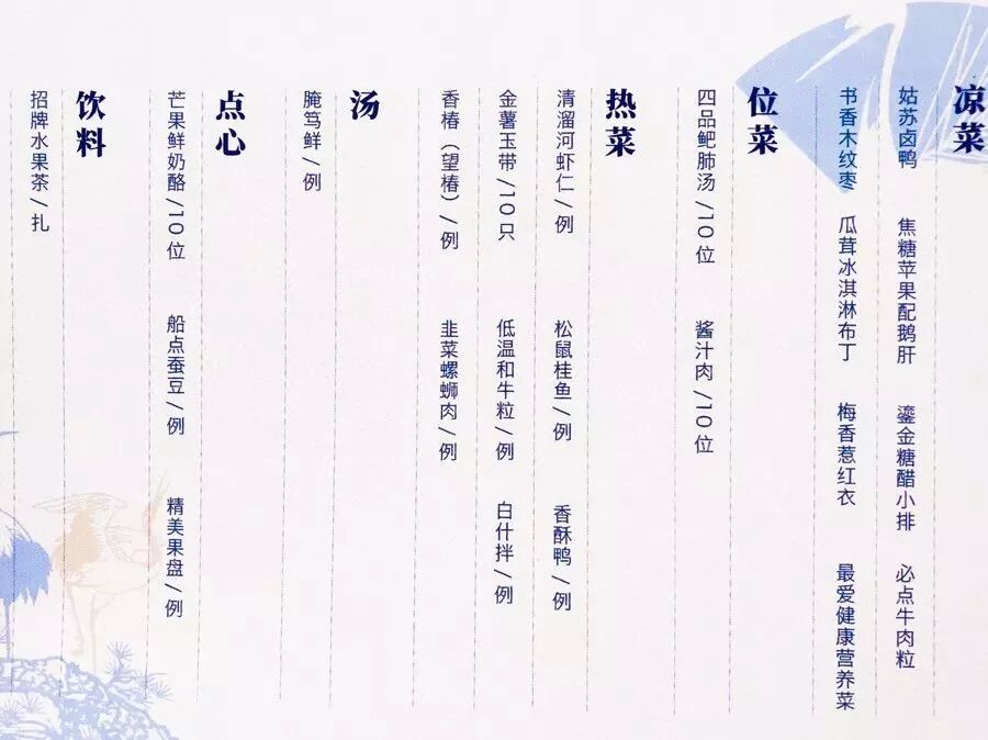 不仅有姑苏卤鸭、鎏金糖醋小排、梅香惹红衣等传统凉菜,还有瓜茸冰淇淋布丁、焦糖苹果配鹅肝这样西为中用的佳肴。