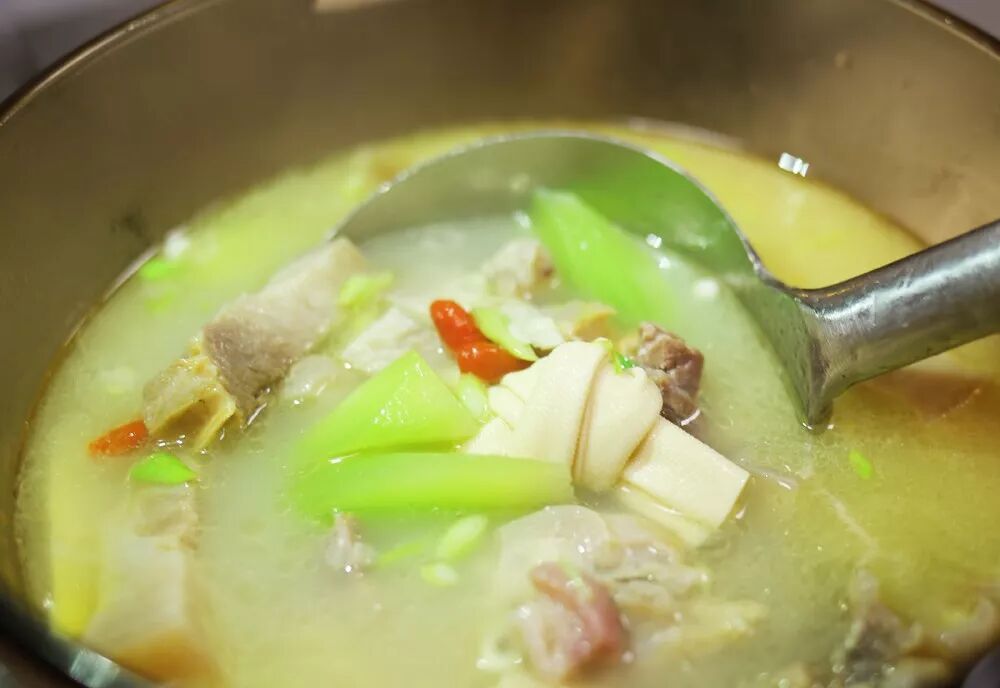 松鹤楼的做法,“腌”是用咸猪手,笃出胶质;“鲜”用的是春笋、新鲜蹄髈、百叶结和莴笋,无一不是寻常之物,搭配在一起却惹得大家一碗接一碗。