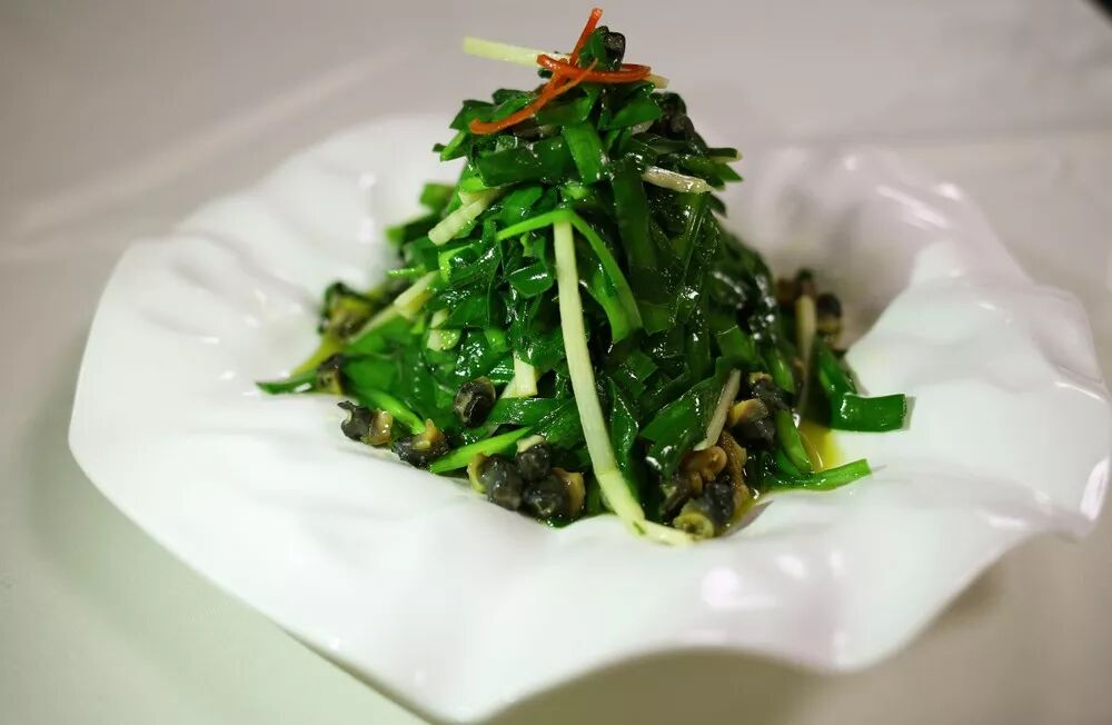 韭菜螺蛳肉,是苏帮时令菜的一番了。清明前的太湖、阳澄湖螺蛳肥美鲜洁,将螺肉尽数挑出,去尽尾部,与鲜嫩的春初早韭,一同旺火急炒,成菜鲜翠欲滴,不软塌,是这个季节不能错过的青头菜。