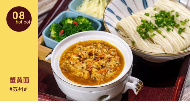 蟹黄面就是将蟹肉和蟹黄剥出处理后,加荤油、姜末等佐料现炒后,要趁热倒入面里,当蟹黄和蟹膏裹上了每一根面条,浓浓的蟹香扑鼻而来,谁又能拒绝这种美味呢?