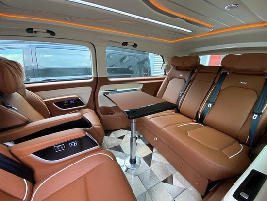 这款奔驰威霆七座商务车大灯、轮毂以及电动门的升级也非常必要,5400*1928*1890mm的条件,内部空足够宽绰了。